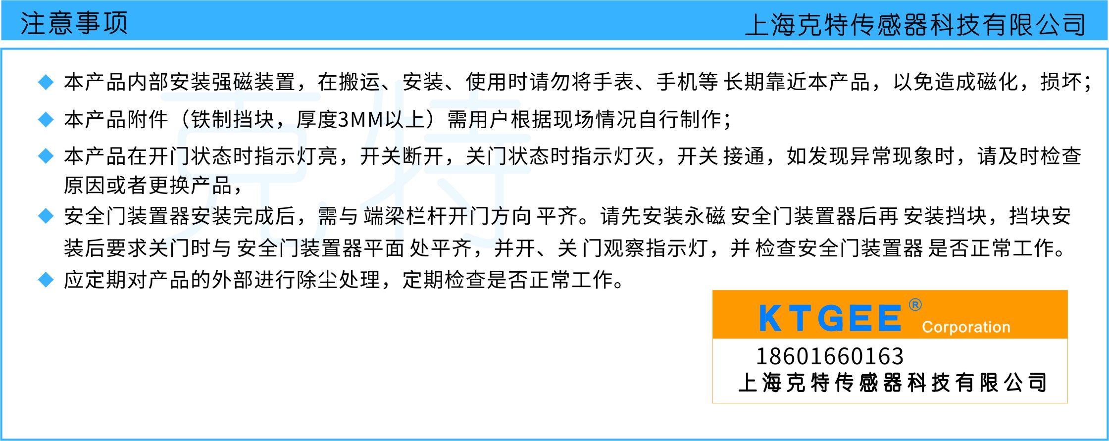 2)克特永磁碰撞式安全门装置器使用环境条件及注意事项